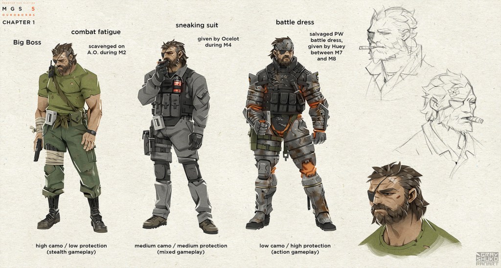 The loadout you decide upon here at the start presents one with a tentative plan for the coming drama of the mission. Additionally, you begin to form your identity as a super spy, your personalized iteration of Snake. The choices you make here determines what kind of operative you will be. The pure spy, the soldier, the ghostly killer.