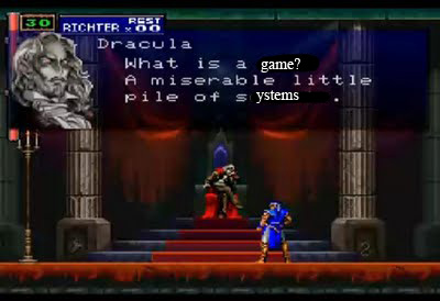 Simply put, systems represent the grand complex of things that can happen within a game – the time and space available to your in-game avatar, the objectives and obstacles set before you. Mechanics are when the player uses a rule, or a move, within a game to change the state of play within it, progressing or dying, speeding or slowing along to the endgame goals of the game. Through mechanics and systems interacting, the dynamic and *interactive* flow of a video game is born.