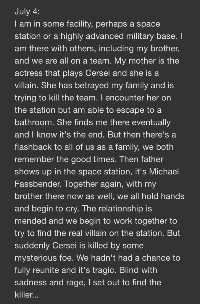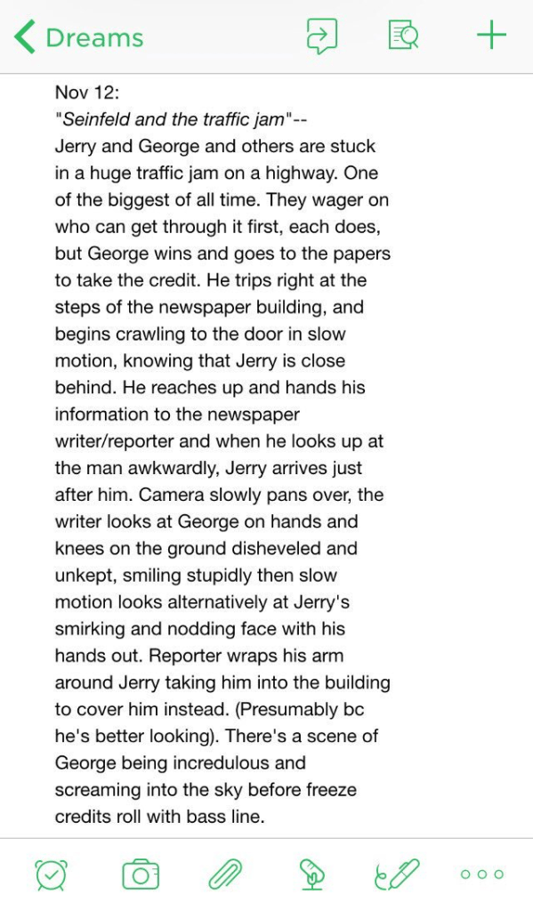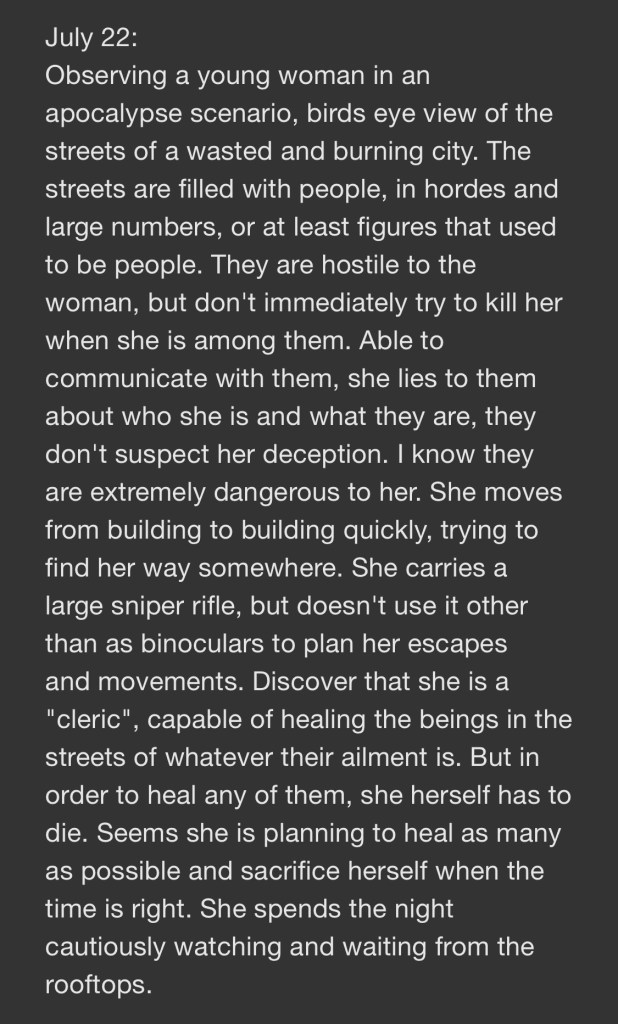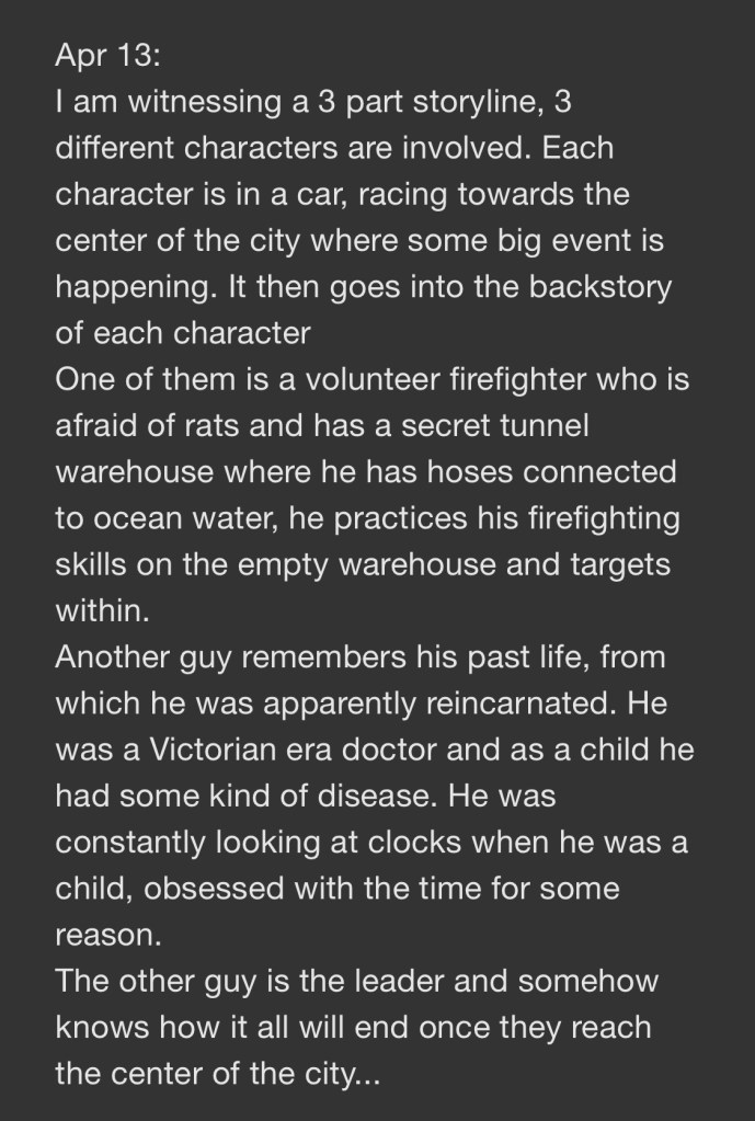 ~ I have been keeping a dream journal consistently for three years now. Within digital Evernote notebooks for each month, I write short narratives of the dreams I can recall upon waking. Generally, I can remember my dreams about half of the days of a given month.
