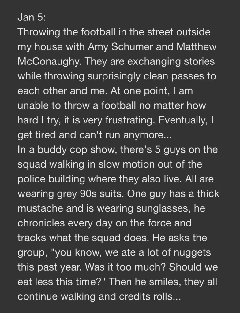 I would recommend dream journaling to anyone, if only to force yourself to write in the morning, with ever-presently fresh and original material. You’ll definitely learn some things about yourself via the esoteric avenues of your inner mind’s nightly escapades. Or you might spark your next captivating writing prompt.