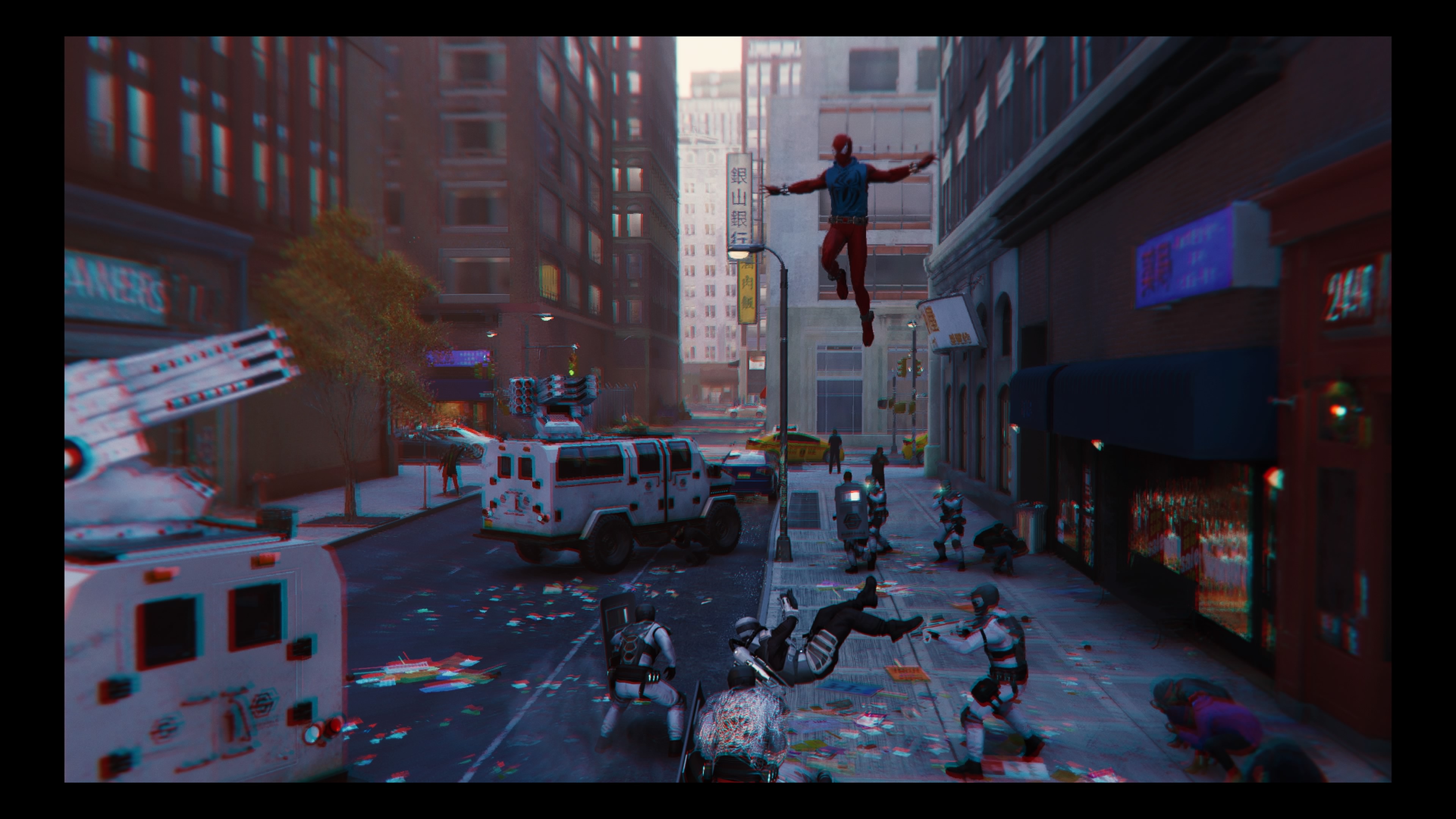 Launch yourself into Times Square, web swinging with abandon through all of the lights and the cars and the gunmen, dodging all manner of architectural obstacles and homing rockets on your way; sling around corners with motion-blurring speed, making hairpin turns through narrow apartment alleys; slingshot yourself over Madison Square Garden and into the nightscape beyond; swing low, skimming the trees and the falling leaves of Central Park; run vertically up the Empire State Building’s full expanse, leap all the way down from its summit, to within a few meters of hitting the street, only to propel yourself into a mega swing, angling yourself and peaking just above the distant skyline, the setting sun shining through for a glimpse before gravity’s inevitable pull drops you back down into the city’s density — to do it all over again.