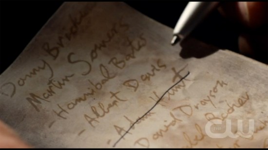 The MacGuffin the show uses to convey these persons, and the procedural superheroics of the first 25 episodes, is a notebook Oliver’s father left him, as a tragic, parting gift, before killing himself so that Ollie could survive after their shipwreck. Within this notebook are nothing but names. By his father’s admission, they represent the people responsible for corrupting the city. As Oliver sets out on his mission, and takes down each of these persons along the way, he satisfyingly crosses their names out of his little “Bingo Book.”