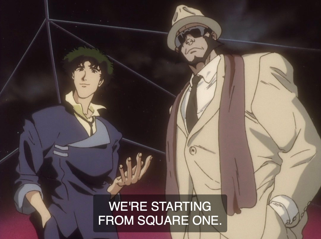 Cowboy Bebop is a show from 1998, an anime directed by Shinichirō Watanabe. It’s great. The music, the animation, the sincerity, and the brevity. Only 26 episodes in the entire series. Space-opera-jazz-western. It’s one of my favorite anime, and considered one of the best, and here are some thoughts.