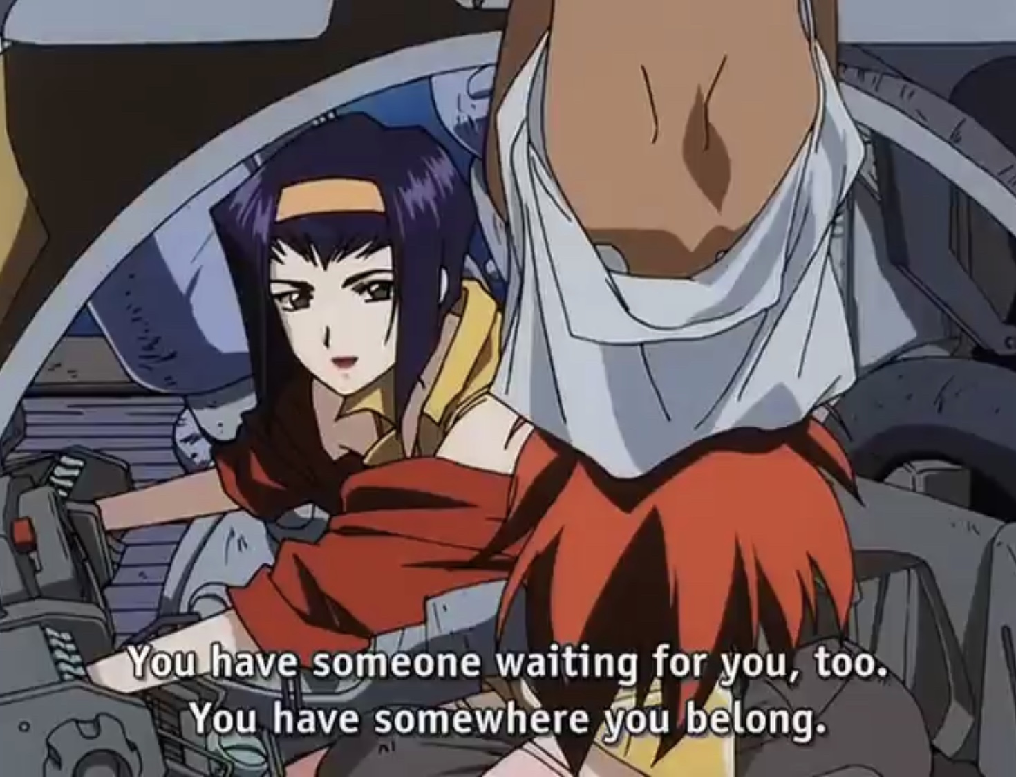 This camaraderie and comfort they discover in each other lessens that weight. Despite never learning how to fully release themselves, they find a measure of solidarity on the Bebop, and catharsis from their respective demons. And it is only through one another that they come to see the truth of their weights, and how they may better carry them to their respective ends.