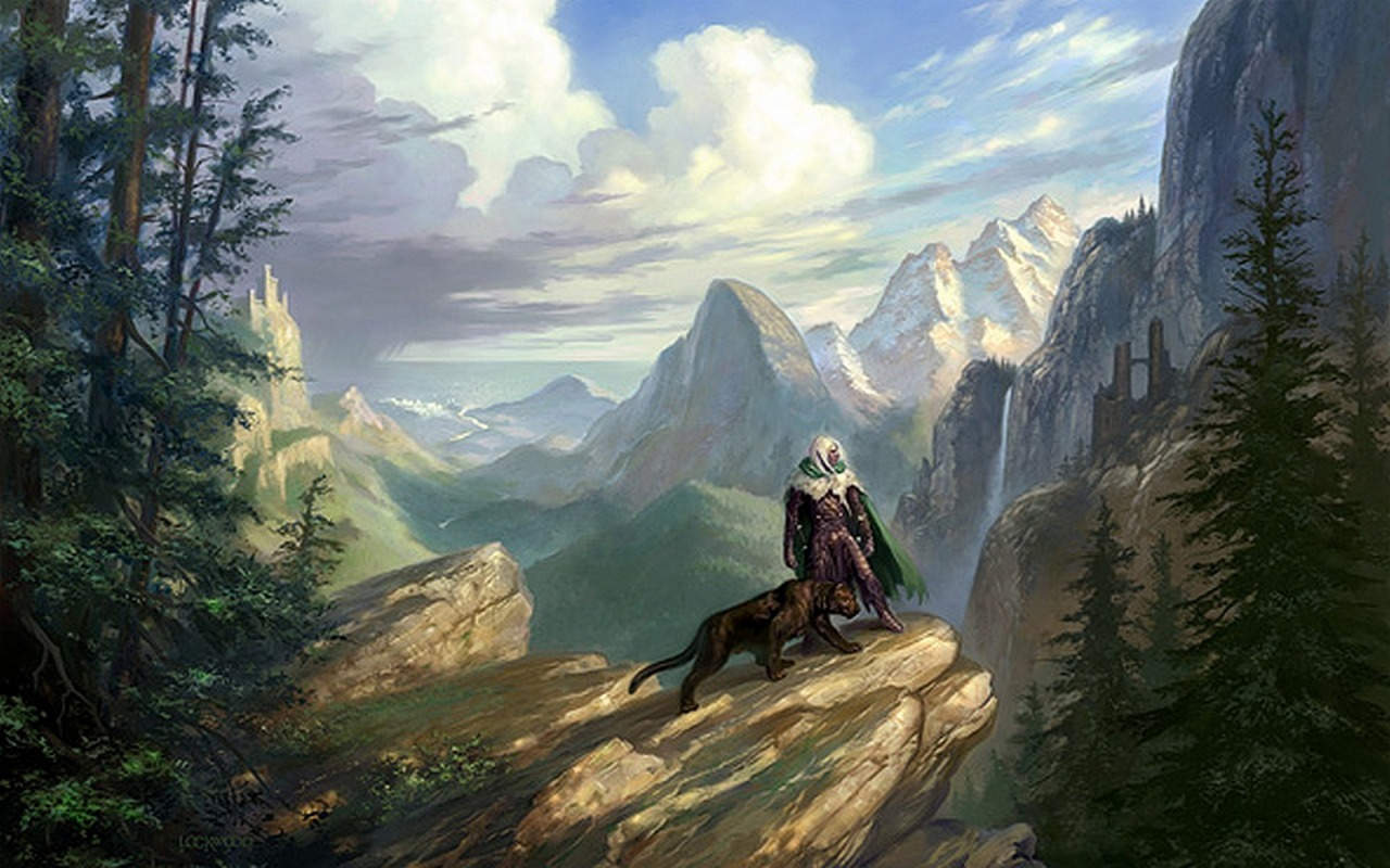 One can see how these two key attributes come into stark conflict. Thusly, a dark elf + ranger, in the realms of Men, is something of an impossibility by the terms and tenets of history and the natures inherent to the players within this fantasy world. One can be relatively certain Drizzt Do’Urden is the only dark elf ranger there is or ever has been. He is one of a kind. His long-time animal companion he brings with him from the Underdark, a mystical panther named Guenhwyvar from the Astral Plane, provides for Drizzt a constant partner in his rangerly duties, and best friend in all his coming worldly trials. Typical dark elves don’t have pets, or companions for that matter — they have slaves, servants, and temporary partners in plots, soon-to-be adversaries, and targets. Never friends. They worship chaos, and have no need for spirituality beyond devotion to the darker gods, namely Lolth, The Lady of Chaos herself. They can hardly stand the sunlight, given their long history underground. Drizzt, surface ranger, learns to brave it, and in all this — breaks the stereotype, the expectation, the path laid out for him from birth. And this is a through-line in all his coming journeys.