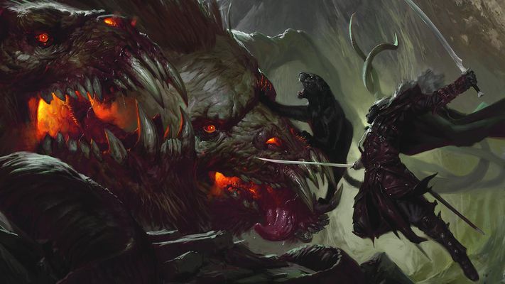 One of the most interesting long-game conflicts within the series are the repeated showdowns of blade and philosophy against nemeses Drizzt and Artemis Entreri. A human assassin of considerable renown, their paths cross early and often throughout the series, after he is first sent on business to take out of one of D’s companions. Drizzt steps in the way of his assassination and they meet sword on sword in ridiculous, high octane duels. These battles between them — always stalemates or narrow half-victories where they both make it out alive — inevitably become intensely personal. They are perfect matches to one another, the only warrior capable of doing so, to either’s life so far. To each swordsman’s mind, the other represents the perfect foil to their machinations thus far, the shadow of their inner heart that they hate and wish to destroy.