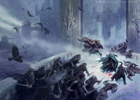 To Drizzt, Entreri is the manifestation of the person he could have become, if he had stayed within dark elf society in the Underdark: cold, calculating, a ruthless and power-hungry killing machine, devoid of life’s truer pleasures. To Entreri, Drizzt is the hope for a life he cannot fathom out of fear and loathing, amongst potential companions and loved ones. He wishes to kill Drizzt to prove that the life he chose, the life that Entreri so hates out of a deep-seated envy, has ultimately made him the weaker warrior. However, over time through their fights with blades and words, each of these men transforms their perspectives. Drizzt changes his mission against Entreri from one of destruction, to one of pity and slight compassion, to one of hopefully turning him over to the side of good. Jarlaxle, more securely Drizzt’s ally over this same period, also aids in this quest, by becoming Entreri’s sellsword companion and adventurer. Entreri as well comes to unburden himself from his mortal rivalry with the dark elf ranger, and looks to create a new life for himself beyond his former profession as a manhunter. All these years of reading, each of these two characters’ growth and development in relation to one another is definitely my favorite aspect of the series.