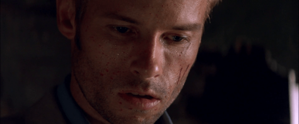 But we know the truth is even darker. The originating point of the self story this man has woven is guilt, shame, denial. Through the words of Teddy, ones we have every reason to believe at that point, Leonard accidentally killed his own wife. She survived the attack. It was the fault of his condition and his wife’s inability to live with it. And he killed her at her behest, trying to force him out of it. We come to find that the ‘Sammy Jankis’ story he keeps telling everyone is his story.