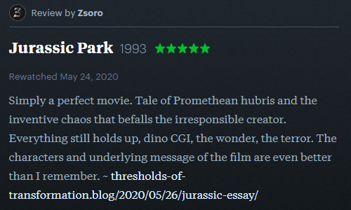 We revel in the possible powers of science, but also, on a meta-level, in the advancements of cinema up to then. There is revelrous shock at the astounding capabilities of computer-generated imagery that, in 1993 and for years hence, looked as nearly equivalent to reality.