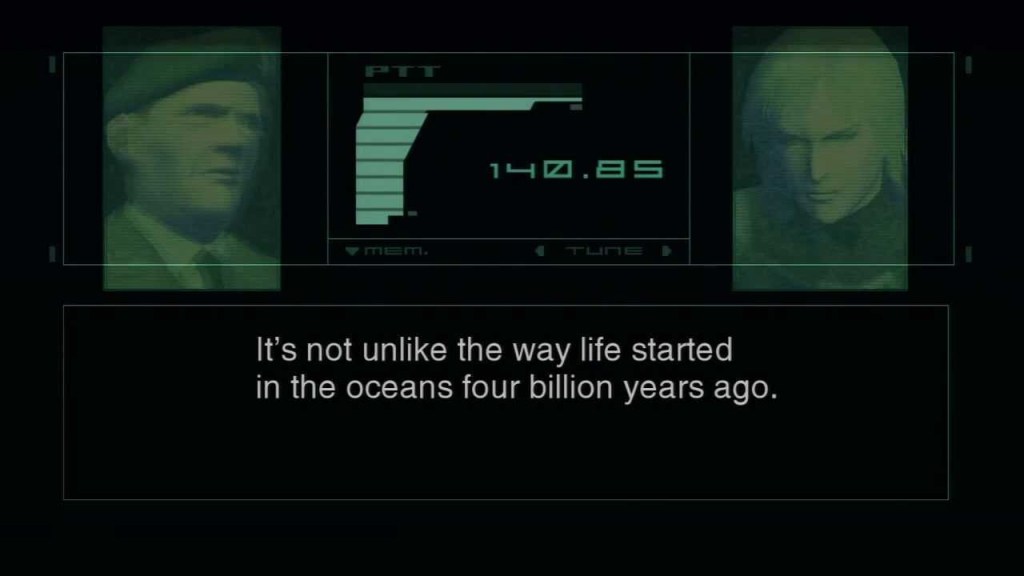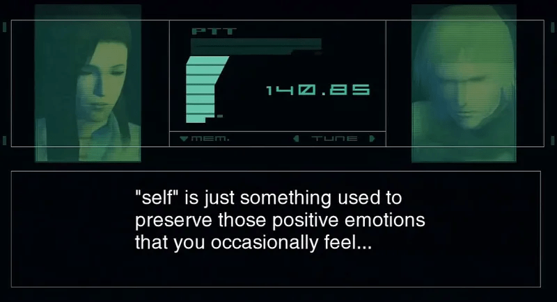 In effect, Snake is stressing the sharing of memes as a way of life. Transcending one’s blood, and the all-important ethos of “the selfish gene” that Liquid was so obsessed with in MGS1, memes allow for a different sort of transference. Unlike our DNA, memes are malleable — they allow us the freedom to choose them.