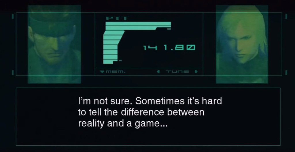 Boldly, MGS2’s developers prove out their sovereignty as creators with this work, unbeholden to you, the marketplace, or even the continuation of their own canon within the Metal Gear universe they have created. Needless to say, making the game this way was a huge financial risk! Unabashedly, they realized they could do whatever they wanted with their creation – and then, they did. MGS2 is not a game anyone expected, wanted, or could ever conceive of – except for the creators themselves. That is artistic expression.