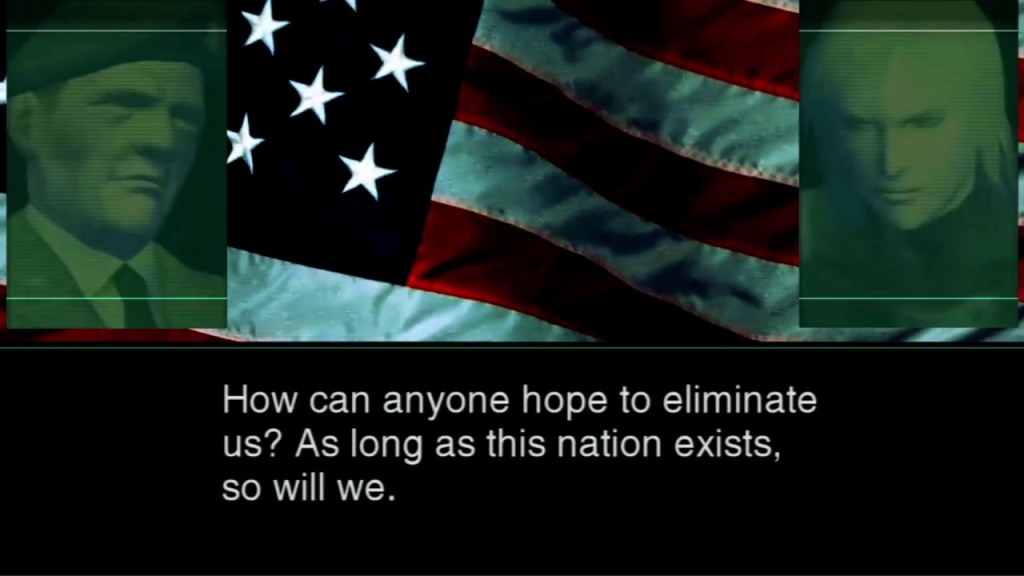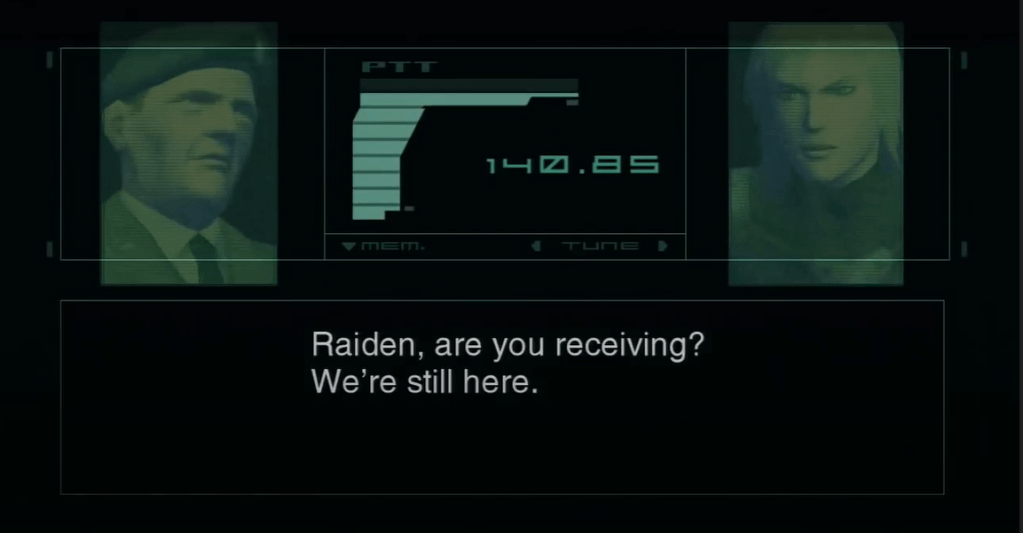 The Patriots, the faceless ‘powers-that-be’, digitally live on in the periphery of the State, with another notch in their belt, the simulation completed, the experiment concluded with its lessons learned, to take and use in their continuing dominion over U.S. global hegemony from the shadows // [You — the player — moves on, too, the full narrative experience of Metal Gear Solid 2: Sons of Liberty’s ‘tactical espionage action’ skills and overarching messages now being carried forth within your mind, to be shared at some point in the wider discourse of human cultural manifestation, as stories, jokes, memes…]