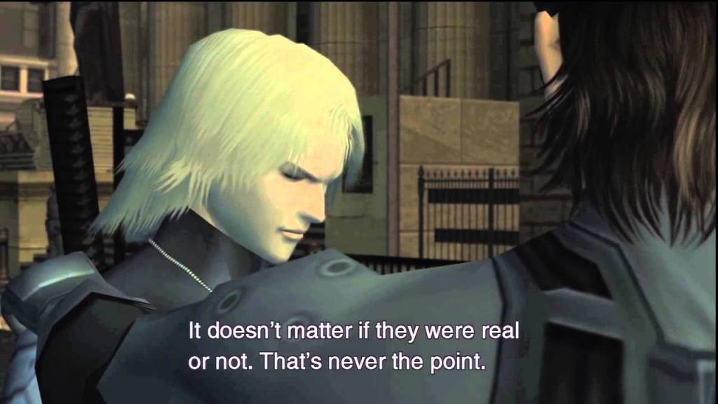 The source and driving force behind any such belief is something Raiden will have to choose for himself. At the end of his journey, after being deceived, manipulated and betrayed by his friends, his lover, his country — Raiden is finally gifted the freedom of choice in how he will proceed with his life. It remains to be seen whether the cynicism he’s earned from his wayward travails as a soldier OR the faith that Snake speaks of, will become the dominant meme within his heart for his next move.