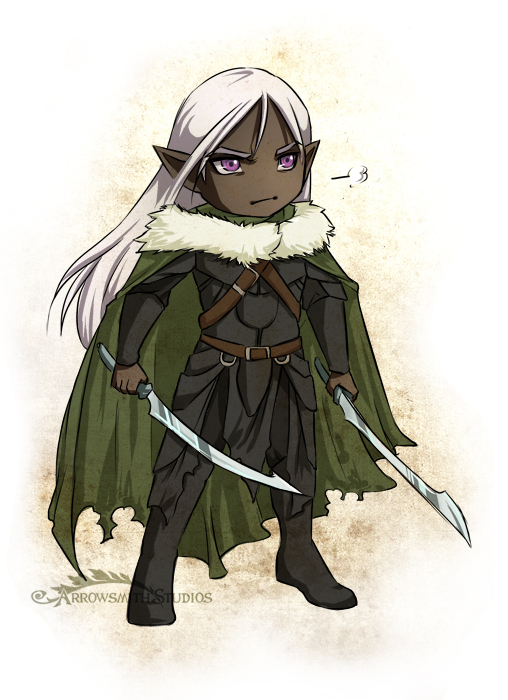 ~ an exile dark elf with a pair of swords, a cat and a wandering, wondering soul. Wields a pair of magical scimitars, Twinkle & Icingdeath, which have earned him the reputation of master swordsman over the many years of his long-lived life. A fighter for good and a protector of the innocent, he has claimed the role of ranger for himself, in action and morality.