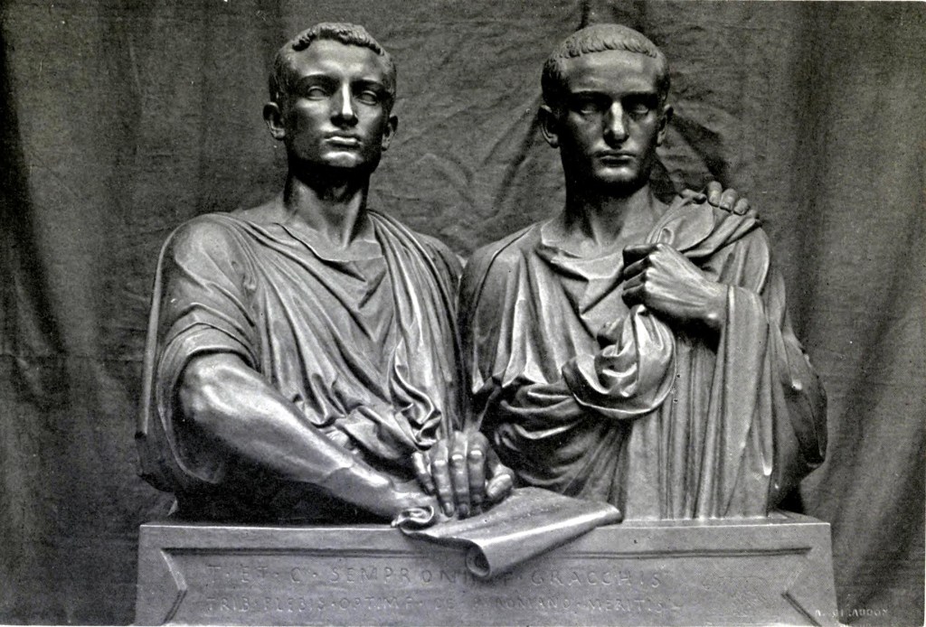 As a result, figures of power and influence naturally arose in the midst of these cycles of mass immiseration to meet them at their moment. A pair of men classified then as Populares, acted from their positions of democratic power to conciliate this rather justified unrest, and play to the people’s material interests in the form of land, tax and debt reformations. This populist duo of Roman consuls, preceding Julius Caesar by decades — beginning with Tiberius Gracchus and following with his younger brother, Gaius Gracchus — proposed modes of modest wealth redistribution. Backed by overwhelming popular support for such reformist notions, each was nevertheless relentlessly attacked and criticized by the landowning ruling class, and by the majority of their brethren in the Senate.