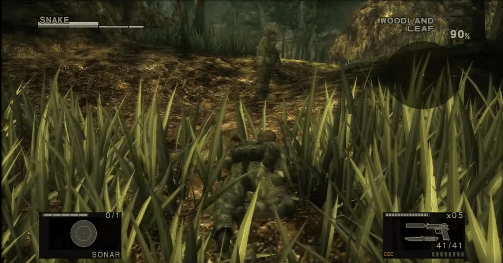 MGS3 introduces the survivalist mechanics of a fatigue bar constantly depleting, needing its refill from a steady diet of strange mushrooms, the occasional pack of insta-noodles pilfered from enemy encampments, and a robust menu of poisonous serpents crawling in the long grasses of your local Russian jungle locale. You must share the stealth with such snakes, ending them before they prematurely end your mission. The game flow creates a tinge of hyperrealism inside of the high-stakes and quite brilliant yet campy anime-esque melodrama that the saga is known for.