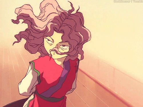 Each of the four fight for their own reasons, and with any good battle shonen — each fights with their heart, impassioned by battle and by its implications for more than just themselves (even Hiei eventually!) Kuwabara fights for his friends, to protect them and more generally, all innocents — especially cute girls! Along the way, he actually shatters the illusions of toxic masculinity, more fully embracing his inherent yearning for companionship and sincere relationship-building with his bros.