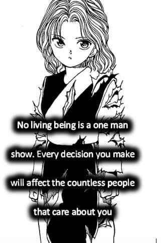 There are people that care about him. They were the reason he came back to the world of the living in the first place. They are the reason he has fought all this way, and became as powerful as he has. ~ They are the reason why this little early 90s battle shonen is as loved as it it.