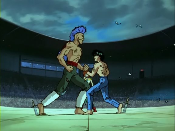 With the onset of ‘The Dark Tournament’ saga in the show’s second season, Yu shifts fully to a battle anime. Distilled violence in the form of showdown after showdown, 1v1 cage-matches commence between our favored boys and their varied villainous foes.