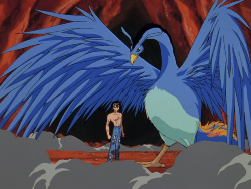 When he is near death, literally in a dark cave alone and in pain, the limits of his spiritual energy sapped after trying to absorb his mentor’s immense power, Yusuke has a moment with his cute little spirit beast, Pu ~ Feeling all of his pain and fatigue and sadness through their illimitable connection, it limps over to try to bring him some water to ease his passing.