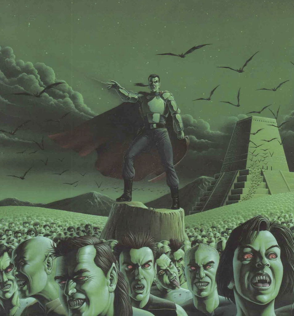 Setting: Earth ~ various Eras: Medieval | Enlightenment | Industrial | Modern ~ battlefields in strategic locales ~ in great coastal cities, over rivers and within hills, toward mountainous strongholds ~ As the countries and factions of humanity war for territory and control, a new threat emerges from within its ancient ranks, out of the darkness of the night – Vampires! – who soon coalesce into a global invasion force. All across the globe, small squadrons of powerful vampiric warriors square off against human armies ~ fang and claw versus swords and guns, invading strongholds and aircraft carriers.