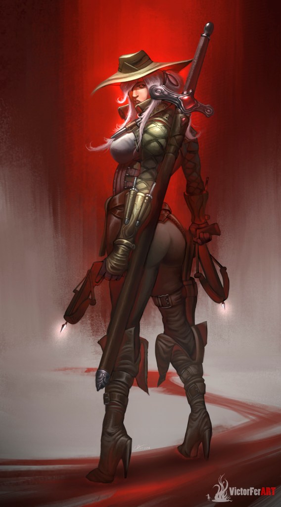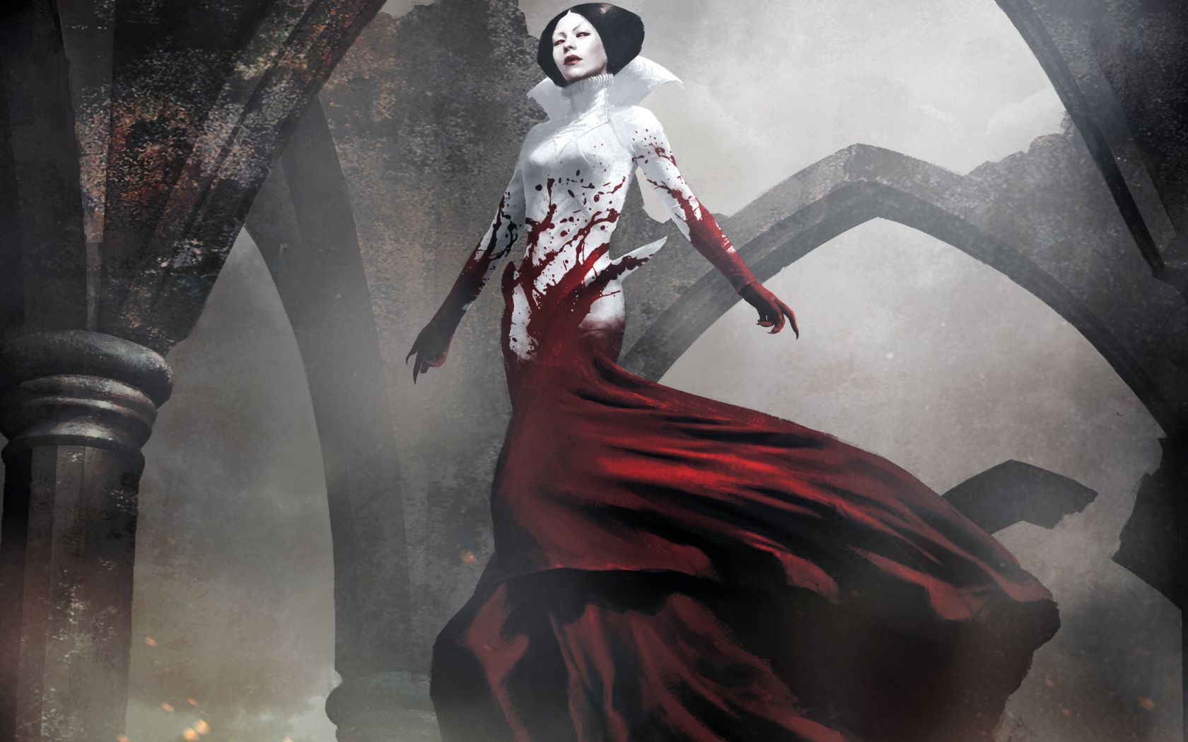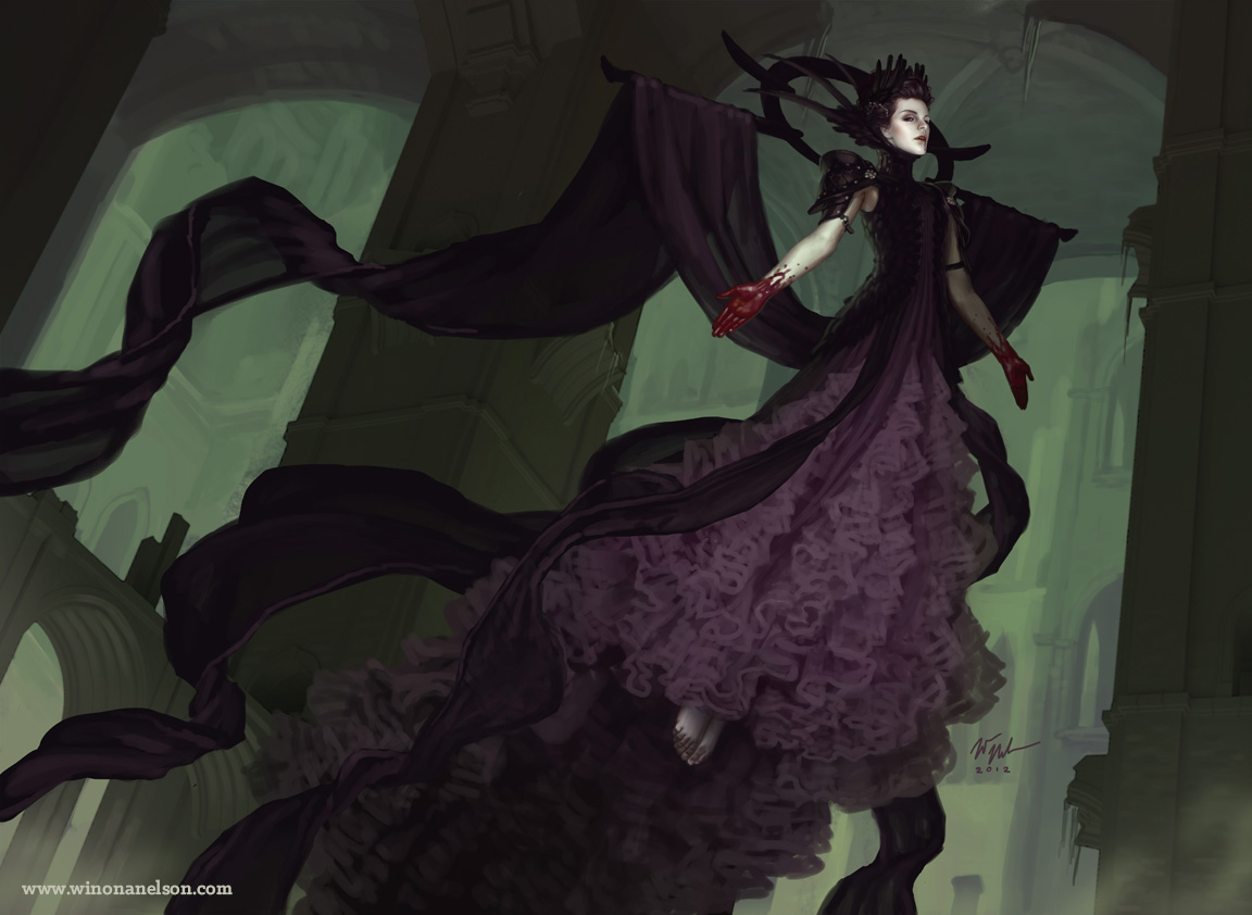 Concept art: ~ A pair of vampires, a Cleric nicknamed “Necrofem” and a Sangromancer nicknamed “The Aristowrath“, prepare to fight in the final match of the tournament to determine the rulership. ~ art by Winona Nelson and Igor Kieryluk, respectively.