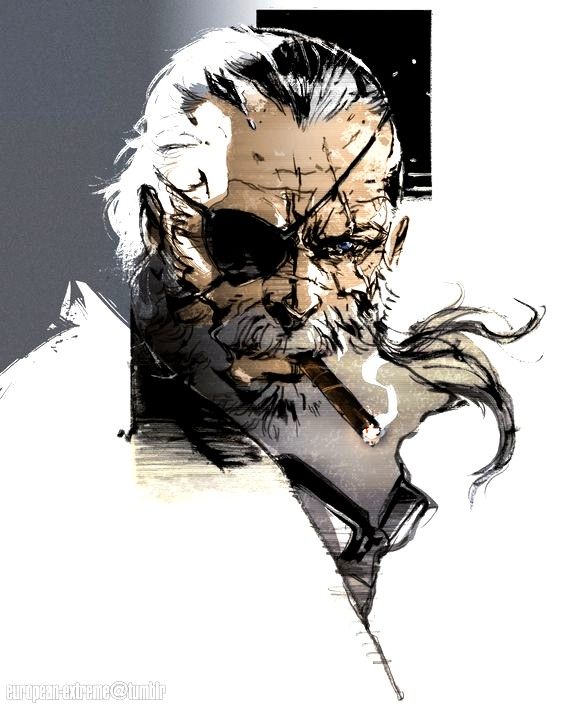 {Old Snake lights the cigar and puts it in Big Boss’ mouth}