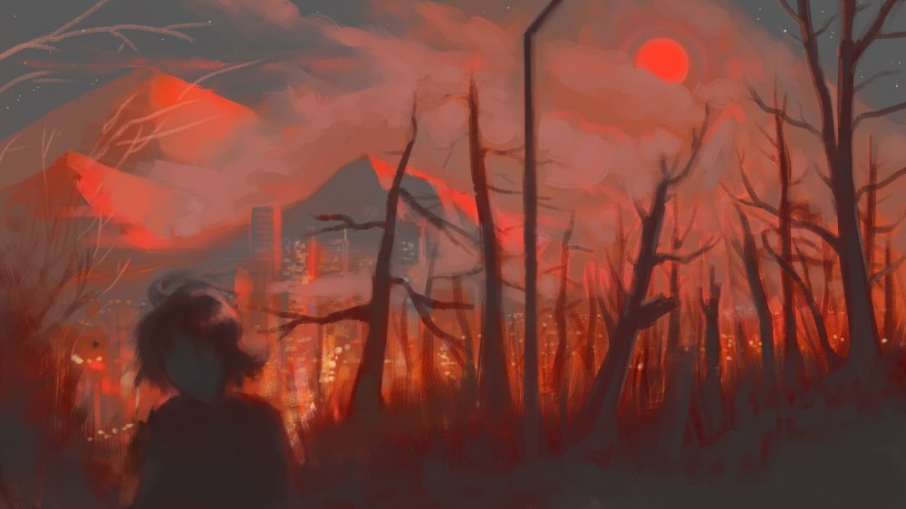 She said the words with authority, but even she couldn’t believe them. Both of them looked over to her. She took a step toward them, hand outreached. A premonition. It must have been. This place will soon burn. They will die. They must get away!