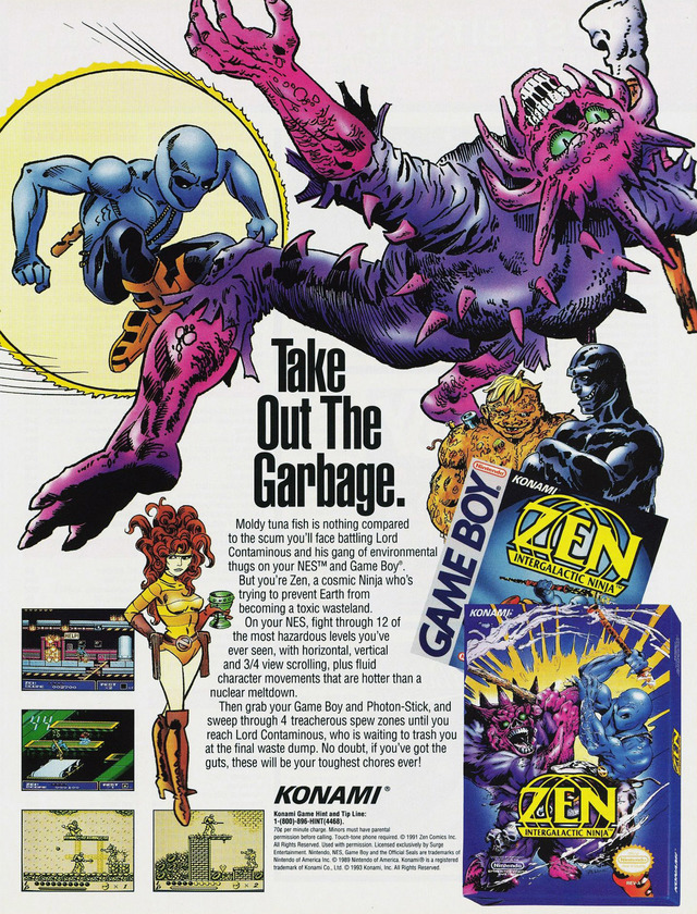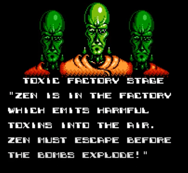 Zen must travel across the world, attacking and shutting down Contaminous’ energy outposts, defeating his lieutenant monsters overseeing such facilities, all the while slowly working his way towards a final showdown with the toxic lord himself.