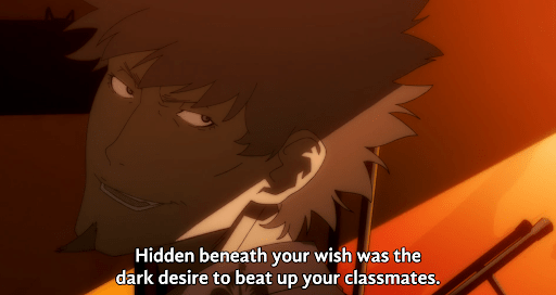And then there is Oshino, father-figure / wingman bro / mystic mentor to Araragi. The hawaiian-shirt wearing hobocore nomad x urchin embodies his own brilliant persona. He amounts to what can be closest called a therapist, or a guide, to the series’ emotional highs and lows. For one, he is an adult. He is there as an affective helper to every character in the series, a subtly psychoanalyzing referee to the free-for-all of so many cross-cutting, soul-shaping relations. Meme Oshino is one-of-a-kind, a true original.