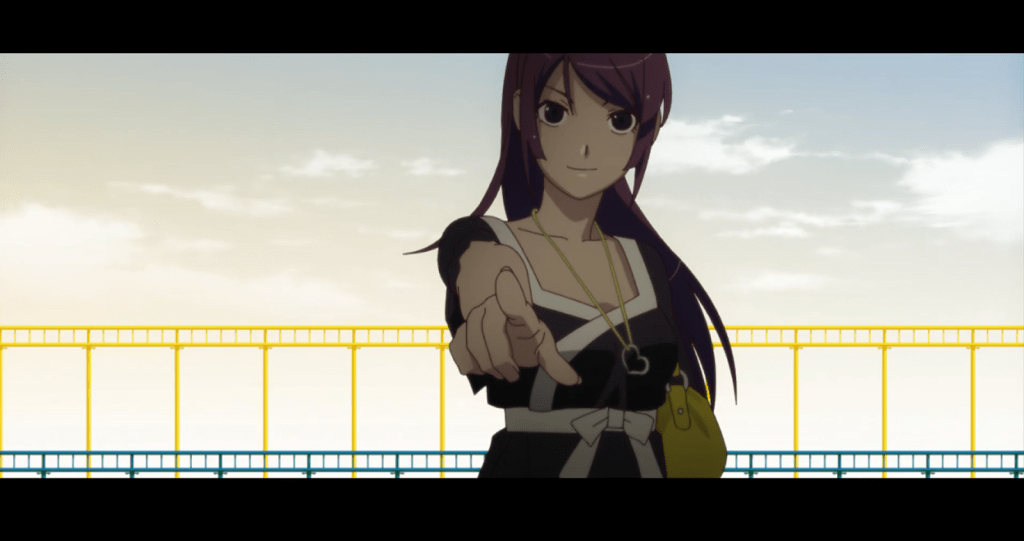Senjougahara is at the heart of the emotional journey; Araragi’s mutually intriguing obsession, as relatively complex as he is ‘simple.’ I will say that the first two episodes of the series present what I consider one of the most concisely impactful and powerful mini-arcs of any anime or show I’ve watched, centering on Senjou and her life, her past as a burden to be fatefully forgotten or remembered. The seductively dangerous “tsundere”, Senjou is the first of Araragi’s serious encounters; it is through her pain, her understandings of others and misunderstandings of herself that serious emotive progressions are made. Her light speed slights of Araragi unveil masks and tear down walls, soon revealed to be coping mechanisms for her own repressed pain. Her private complex contributes wholly to her natural charms even as it launches them like daggers at her chosen foe.