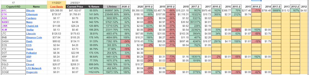 Now, much of that goes by the wayside when it comes to cryptocurrencies, which can outperform stocks, form their own lightspeed bubbles of millionaire-making capacity, and surge based on memes and tweets all rather capriciously, without any fundamental reasoning behind such extraordinary performance. My recommendation would be much the same on crypto — do your own research! Except understand that you are both 1) investing in something fundamentally different from an equity, as there is no underlying company or internal rate of return to a currency’s valuation — it is just a mode of exchange, a store of value — and 2) likely to miss out on some extraordinary investment value if you forgo it as an asset worthy of your portfolio’s attention! One need only look at their price movements over the last 5 years to understand the home run potential of some of these digital coins.