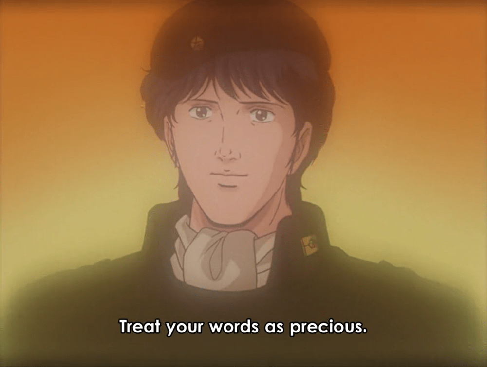 “I’d like to become a historian, and leave behind a record of Admiral Yang for the future. To leave behind as many possibilities as we can for the people of the future to consider… Isn’t that the duty of those of us in this era?”