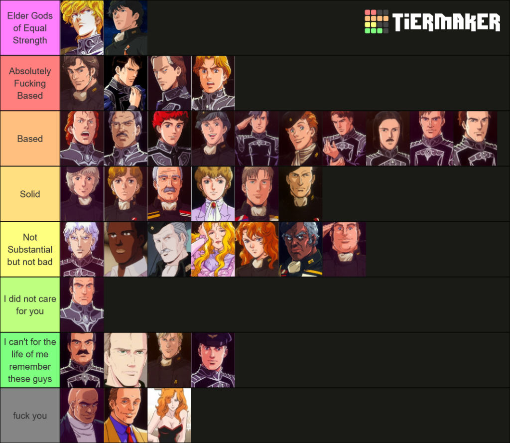 Altogether, the saga of LoGH builds out an incredibly deep and earnest space opera to best Star Wars and rival Game of Thrones in its scope, philosophy, historicity, and characterizations of the archetypes and dramas in play within such long-game conflicting. It is not only among the best anime I have ever seen, but among the best of any fiction, in any medium.