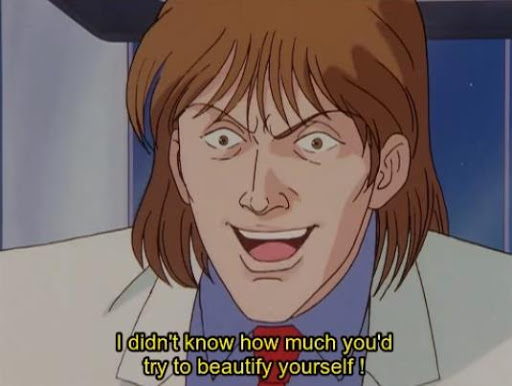 ~ Oberstein, the scheming adviser under Lohengramm, urges them to cede the prevention of a planned massacre so as to reveal the nobility’s cruelty in the attack — 2 million lives vs. 25 billion lives calculated, the logic of Machiavelli, “greater good” decision that doubles as a power grab — no better representation of such politicking than Oberstein — “The conqueror can’t succeed without dirtying his hands.”