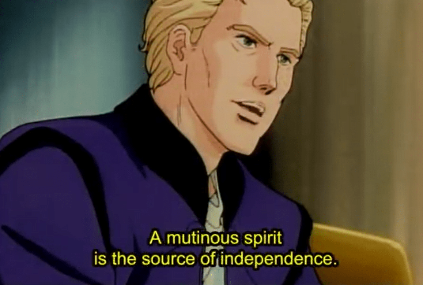 Yang’s unwavering convictions to his principles — even in the face of a ‘benevolent’ dictator in Reinhard — establish his character absolutely. The boons of democracy come into question before reforming material conditions within the empire and so many skeletons drifting throughout the starways thus far warring against that regime. Yang’s quest becomes indirectly one of mentorship, sharing the knowledge of his heart and mind to the next generation in Julian Mintz and the others of the independent remnant government of democratic-republicanism.
