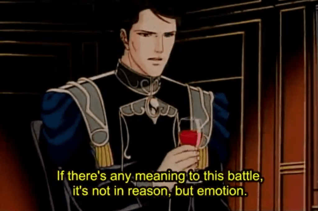 Better than any saga I’ve yet seen {including A Song of Ice and Fire}, LoGH plays beautifully with the contingent moments, the vicious cycles, and the conflicted, larger-than-life personalities imperative to history’s grand flow.