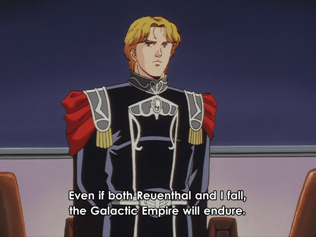 In the end, Reuenthal is right — The God of History’s thirst for blood is nearly unquenchable. A death of one kind or another marks the end of every saga and the beginning of another. In Legend of the Galactic Heroes, this is no less true. The cycle of warfare, whether attempting to order the galaxy into a unified whole via conquest — or staunchly defending a worthy ideology against the nigh indestructible march of its antithesis — is the transcendent force of this space age. Despite its brutality, it gives meaning to the inevitable death of the peoples and dynasties involved, and provides a steady scaffold of ascension and influence to those most ambitious, such as Reinhard, Reuenthal, Rubinsky, along its bloody path through the cosmos. For better or worse, such an age necessarily creates its heroes.
