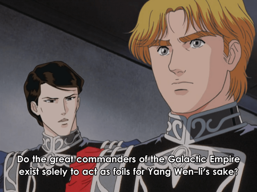 As clear sun and moon archetypes, they each see Reinhard as an icon to behold, but gather their own position relative to him very differently. Their own sub-saga plays out to the end and their final conflict and resolution is among the best in the series outside of Reinhard and Yang’s arcs.