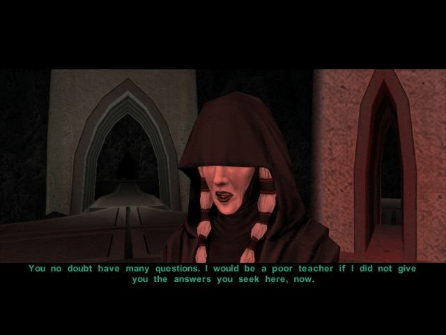 Them and another, one who best marks the philosophy of Jedi and Sith with equal parts dialectical philosophizing and scorn, making her appearance in KOTOR II: The Sith Lords: Kreia.