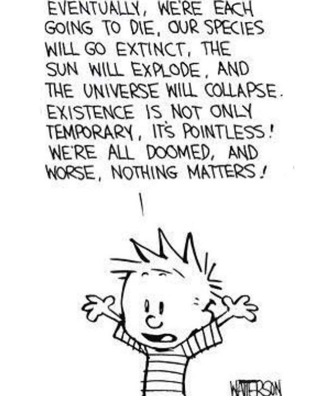 The actual end of the world, or universe, is instrumentally carried forth by entropy via the second law of thermodynamics. Asimov already laid this out. To the discerning, the end of the world is truly wabi-sai— an impermanent, ever-shifting, beautiful and tragic process. But only to us. This is just our observation, our little marked slice of time, as sentient beings. ‘The End’ is really the end of what? Our consciousness as a species. Us merely experiencing the universe. The universe was here long before us and will be here long after us. {so too will the Earth likely outlive us as well, though it has a predetermined expiration date, by way of our Sun having one.}