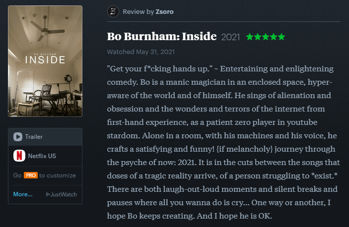 - Bo Burnham: Inside (2021) — Netflix