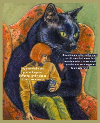 Eventually, with any chance of sincere revolution {ha!} buried, the (pseudo)solution to these problems becomes, as individuals increasingly isolated from our labor and from each other, simply to change our attitude about it all.