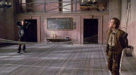 Rosencrantz & Guildenstern Are Dead (1990), however, imagines them as real people. Not as PCs, or potential protagonists worthy of their travels in Hamlet’s Denmark together, but as actual persons that have been drawn into a world that they cannot explain nor wield any real control over. Events “play themselves out to aesthetic, moral and logical conclusion,” as the theater troupe Player tells them, and we get to see R and G’s true personas primarily as a response to their liminal environments, through a world that is not for them.
