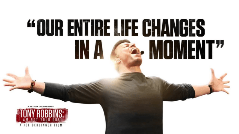 In I Am Not Your Guru (2016), Tony Robbins’ giant booming voice screams out “Your life can change in a moment!”