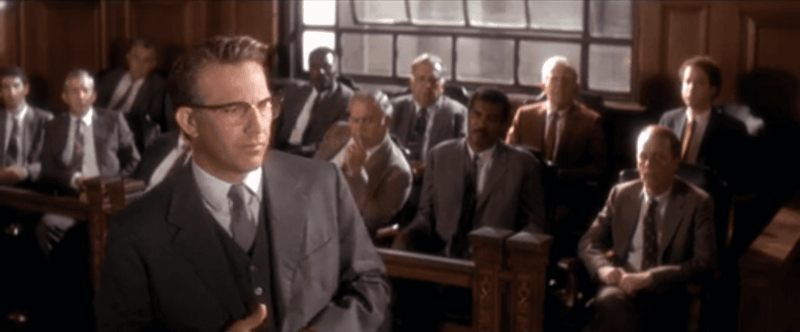 Smith speaks to his colleagues in “the most powerful governing body in the world”; Garrison speaks to a jury of his peers, everymen doing their civic duty for that day.