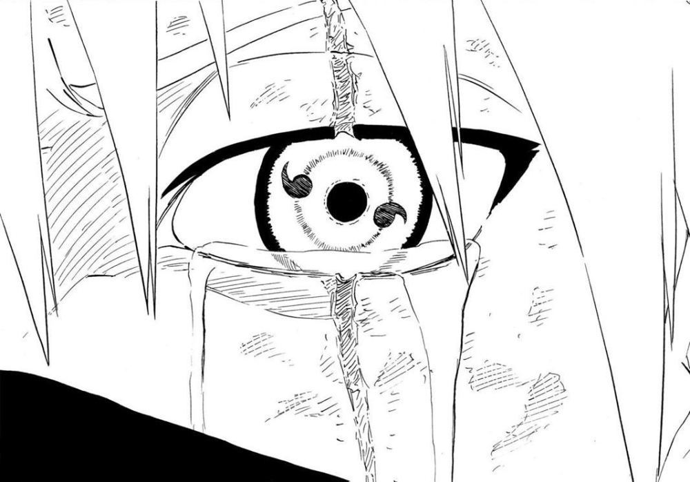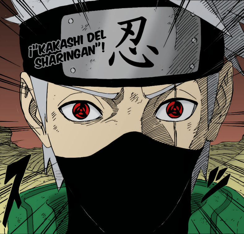 In that issue, in the fight against villainous {yet sympathetic!} Zabuza, the “Demon of the Hidden Mist”, Kakashi is forced to finally reveal — and use! — his hidden eye, an eye wielding the mystic Sharingan.