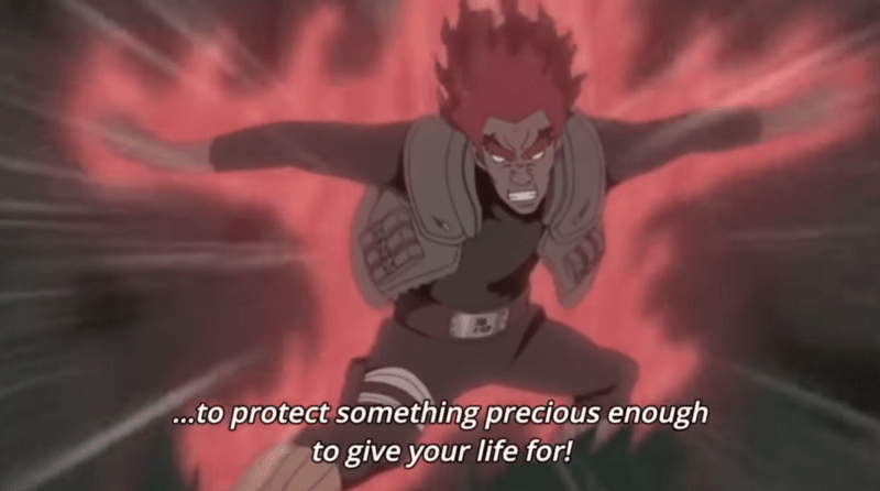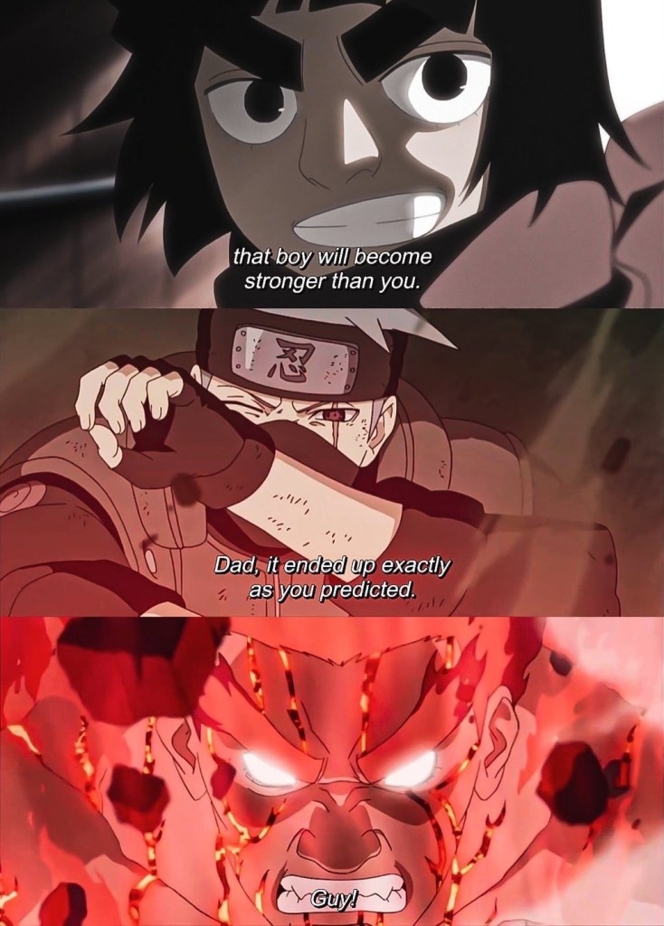 The dramatically-named “Eighth Gate of Death” is Guy’s apotheosis, his opus as a lifelong warrior. It is a power level that he can only arrive at after a lifetime of training and fighting in mortal combat. His final act, with a wholehearted acknowledgement from Madara, Guy’s fight against the GOAT only narrowly comes short of ending him and the Fourth Shinobi World War with one epic kick.