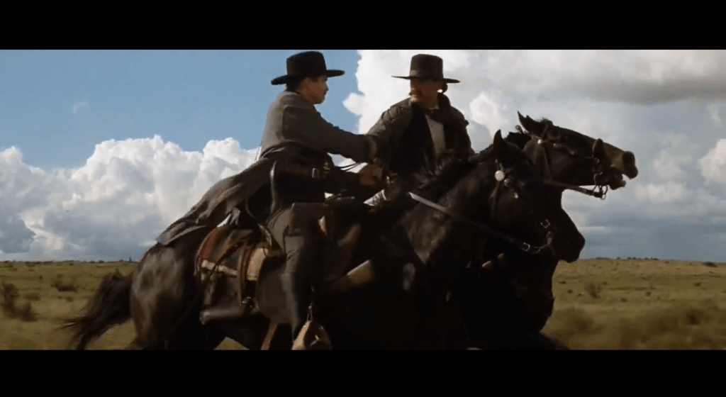 Wyatt Earp lived to be a ripe 80 years old, with a life led where he could painstakingly build his legacy — whereas Doc Holliday died in a bed in his ‘prime’ years, at a young 36. Tombstone’s final scene between them palpably understands the heartfelt struggle between the two men parting ways before they’re truly ready to.