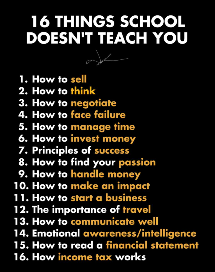 There it is, the 4 things I believe should be taught in school. Simply put, the education of the future must be better. ~